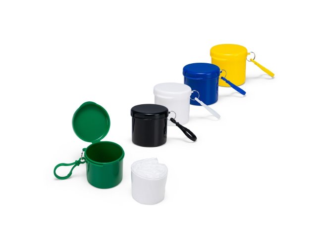 Descrição: Capa de chuva emergencial em tamanho único, feita em plástico. Acompanha embalagem plástica em formato cilíndrico com mosquetão.