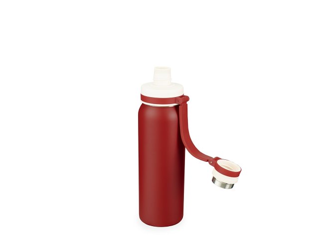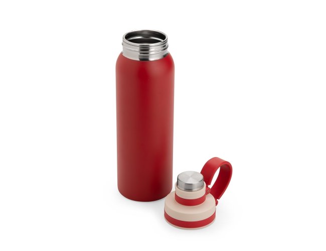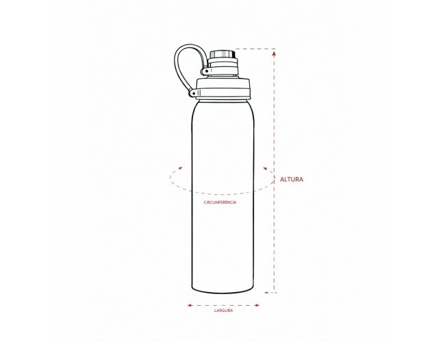 Descrição: Garrafa em inox com capacidade máxima de 800ml. Possui tampa plástica com protetor rosqueável para o bocal e alça fixa em silicone.