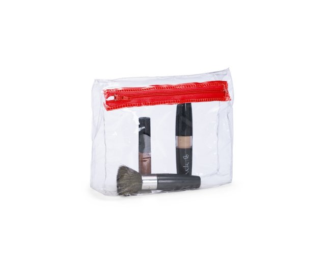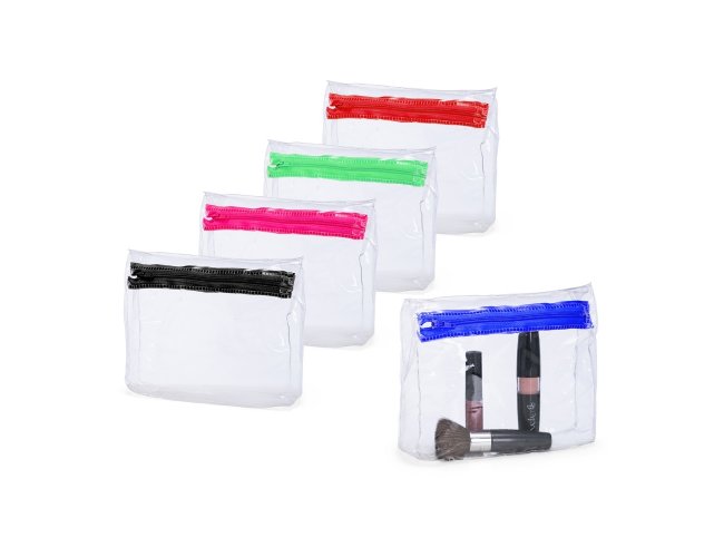Descrição: Nécessaire confeccionada em PVC transparente com fechamento em zíper.