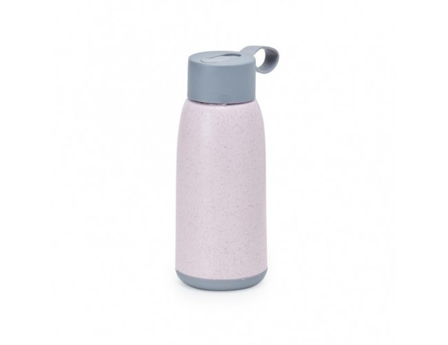Garrafa em vidro borossilicato com alça em silicone e tampa rosqueável, com capacidade de até 400ml.